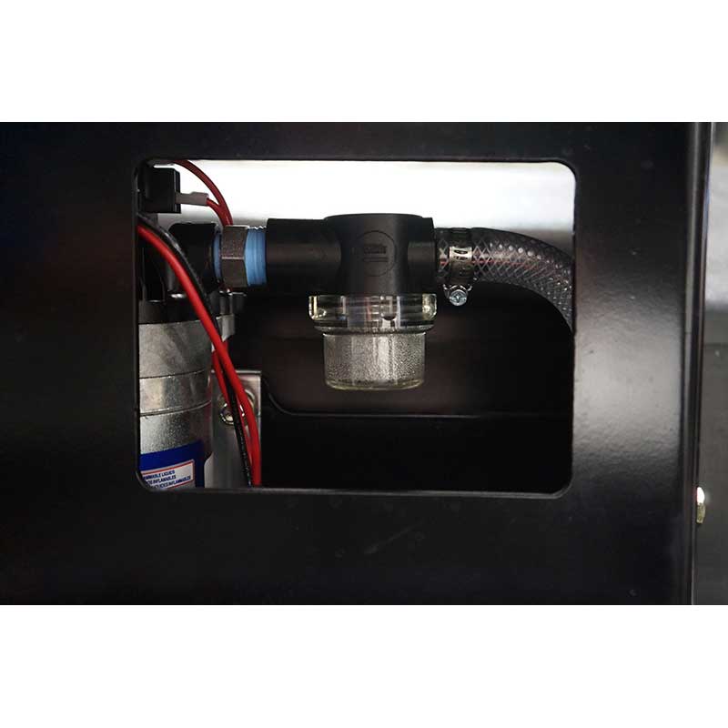 - Pre-drilled for easy installation of an optional pressurized water system