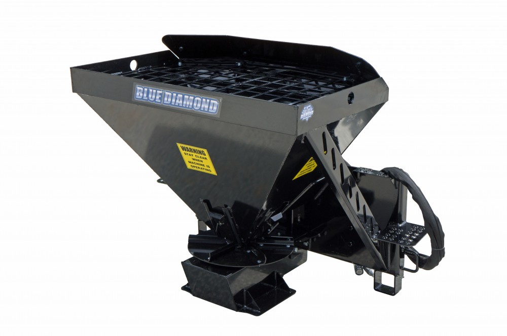 The all new Blue Diamond Scoop and Spread Material Spread is perfect for applications such and sand and salt spreading on ice, seeding or ferilizing turf, or for spreading feed or bedding. To use, simply use the hopper like a bucket to scoop your material and then turn on the hydraulics to spead up to 30' wide.