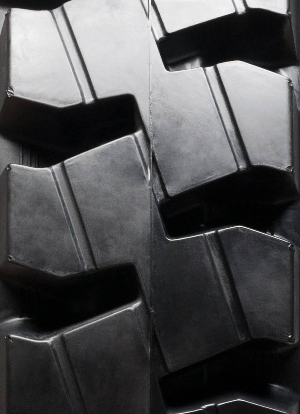 Our proprietary abrasion resistant rubber compound further enhances the durability of these tires, making them last up to five times longer than traditional tires. Originally designed for the demanding conditions of the mining industry, these tires are built to withstand high heat, rough terrain, and 24/7 operation. This makes them the top choice for those looking for a high-quality solid tire. On average, our customers have reported 3000-4000 hours of run time with these tires, but the actual lifespan may vary depending on driver skill and application.